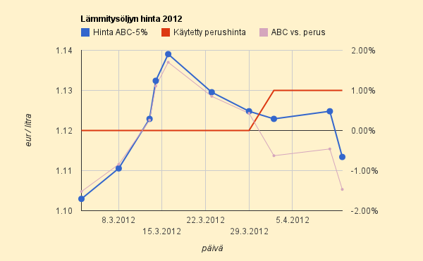 HOK-ABC:n hinta vastaa muiden lämmitysöljyn toimittajien hintoja, kun hinnassa huomioidaan 5% bonus. Lisätietoja Lämmitysöljy-sivulla.