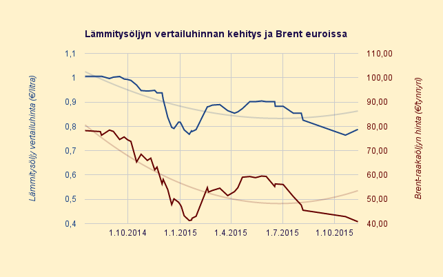 Tähän tietysti sopii mahdollisimman huonosti, että vertailuhintana käytetty HOK/ABC-lämmitysöljyn vertailuhinta nousi 76 sentistä 79 senttiin (vertailuhinnasta on poistettu bonuspalautus 5%).