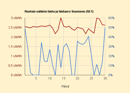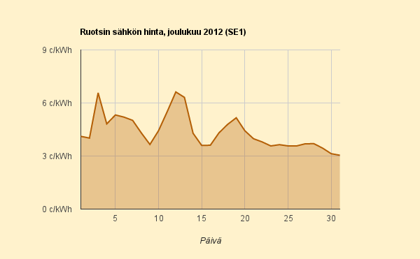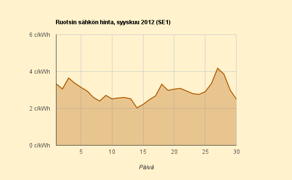 Ruotsin hinta (SE1): 3,0 c/kWh