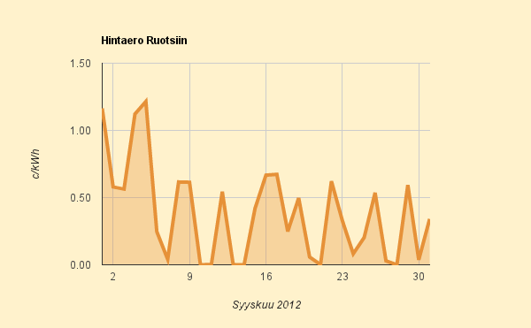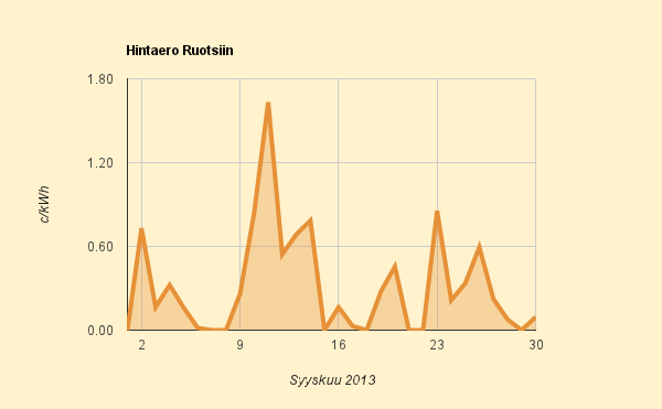 Kuukauden kallein hinta: 4,7 c/kWh (25.9.2014)