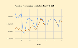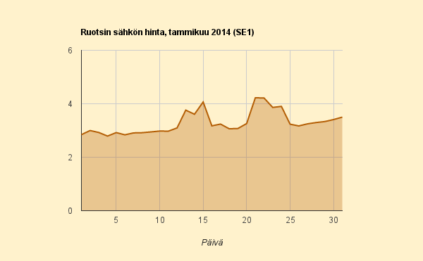 Ruotsin hinta (SE3): 3,6 c/kWh