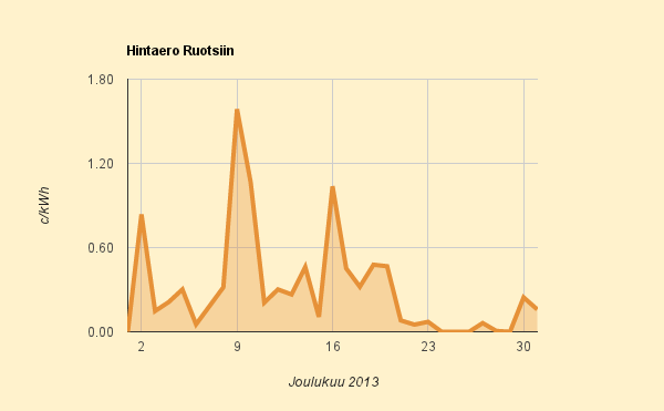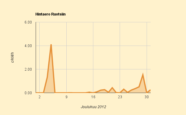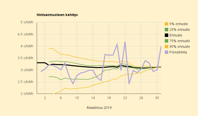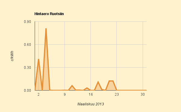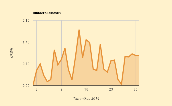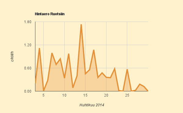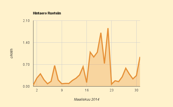 Kuukauden kallein hinta 4,2 c/kWh (22.3.2014)