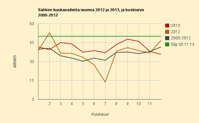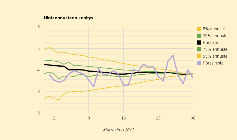 Marraskuun 2013 lopullinen keskihinta 3,804 c/kWh