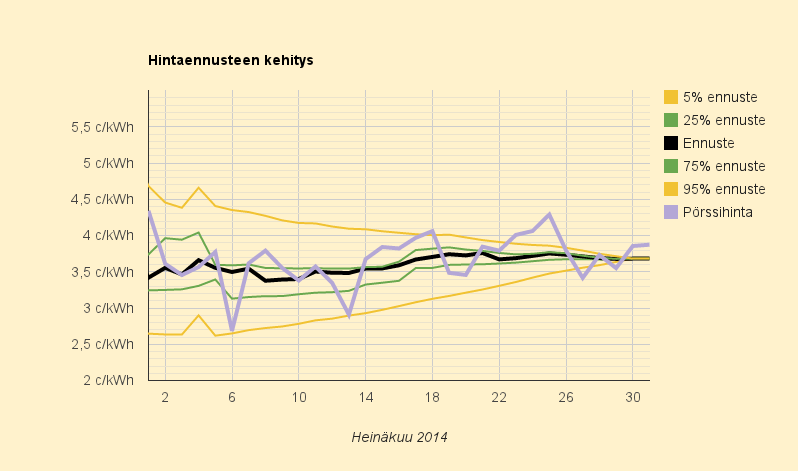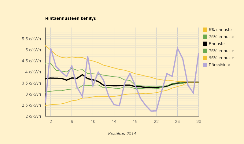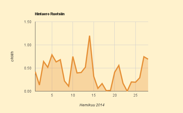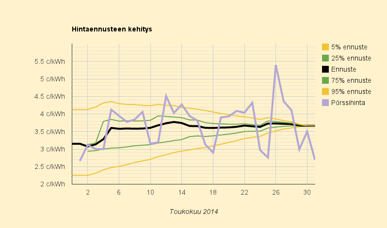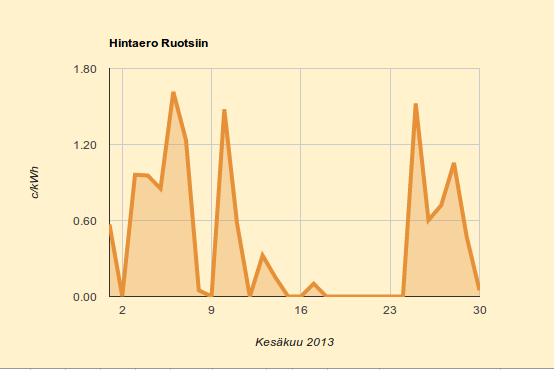 Korkein hinta 5,40 c/kWh (26.5.2014)