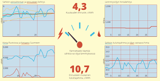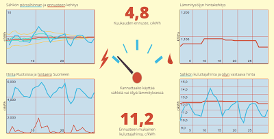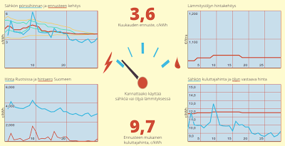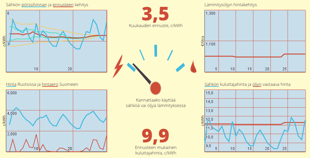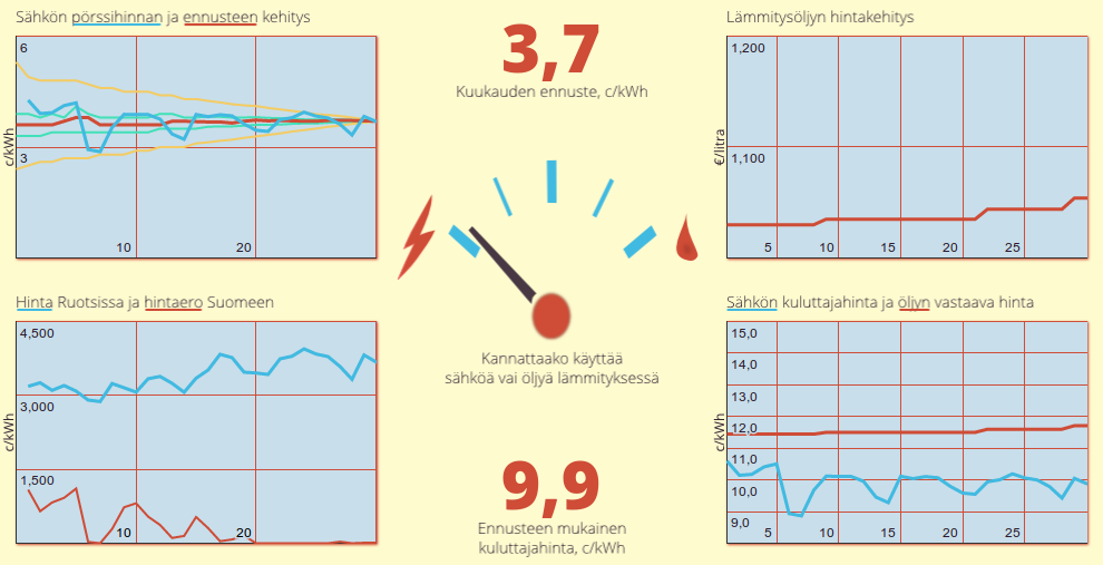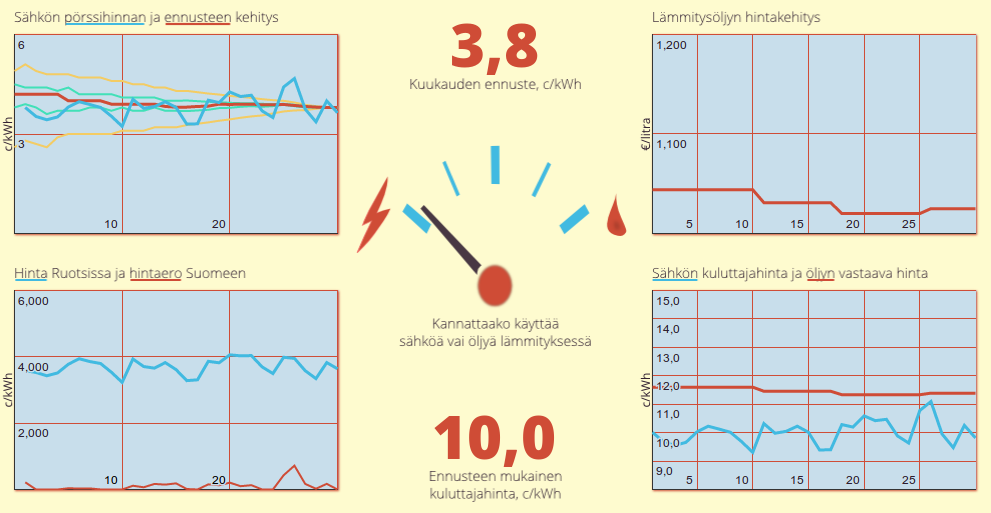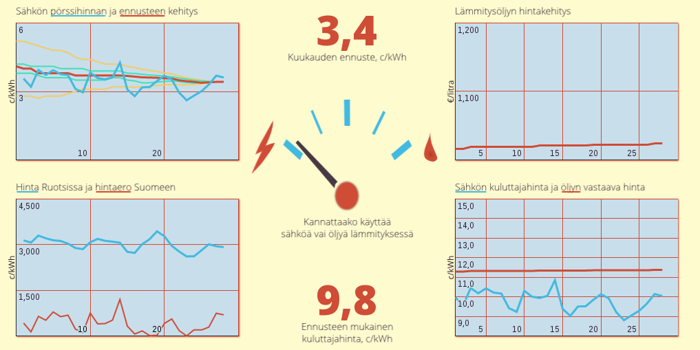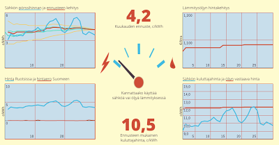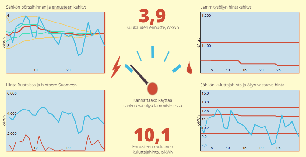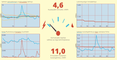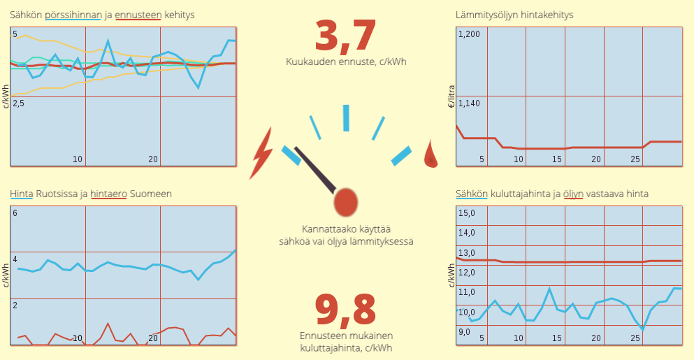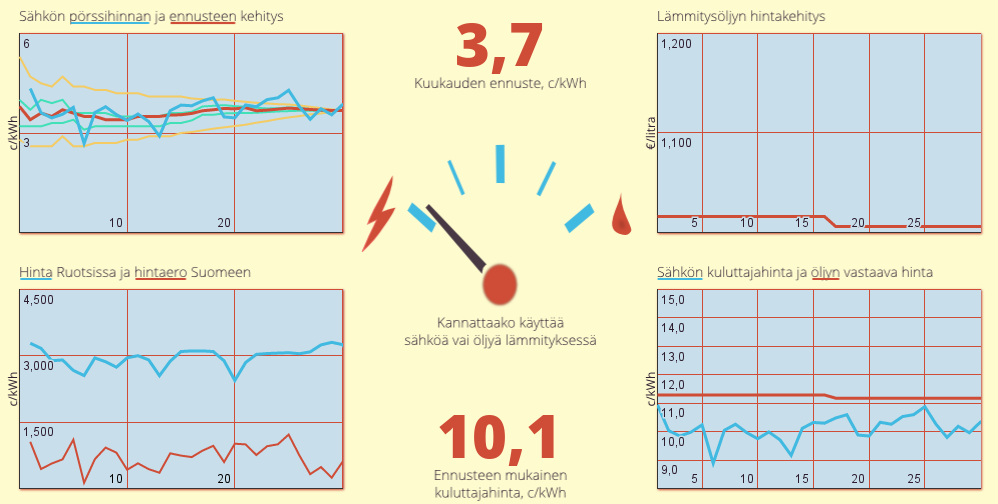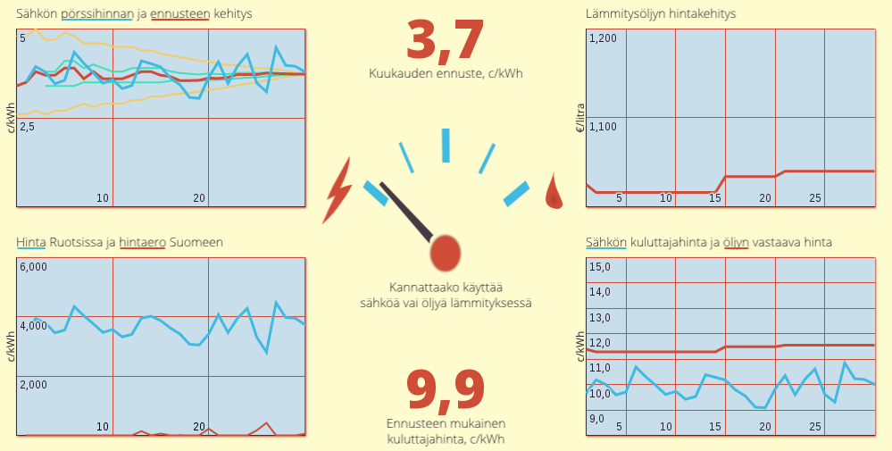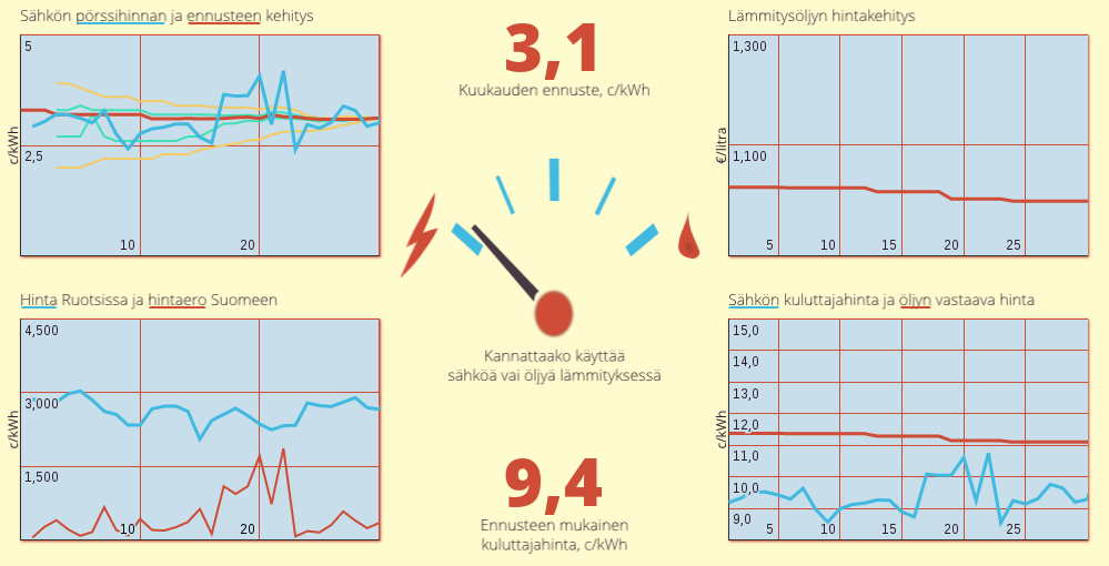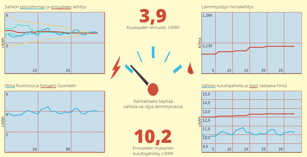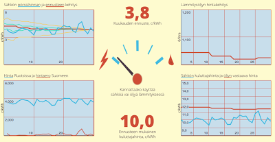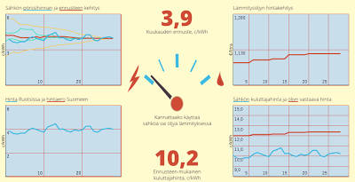 (Öljylämmityksen vertailuhinta vaihteli kuukauden aikana välillä 3,9 c/kWh – 4,0 c/kWh)