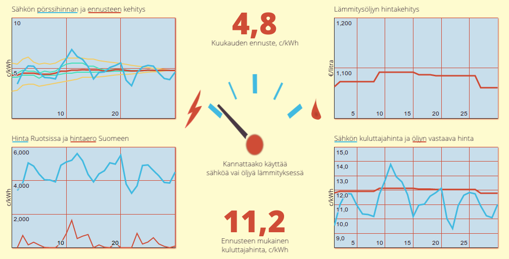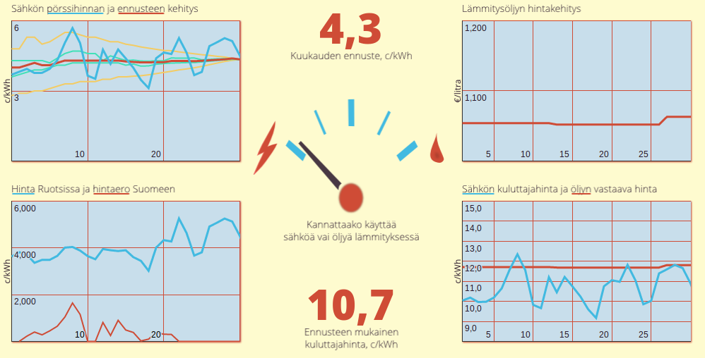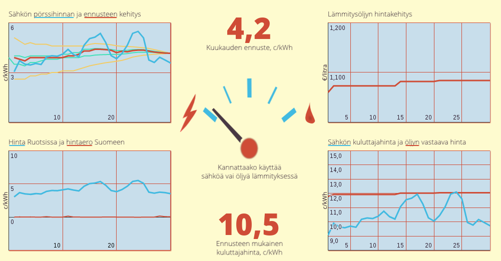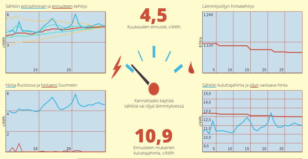 (Öljylämmityksen vertailuhinta vaihteli kuukauden aikana välillä 4,4 c/kWh – 4,5 c/kWh)