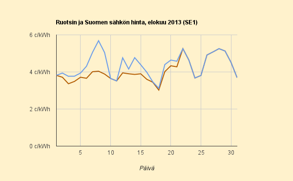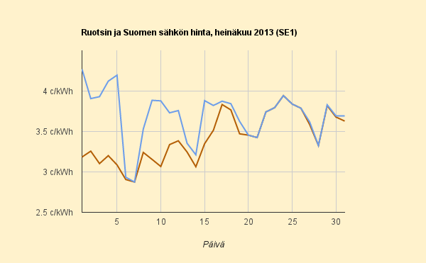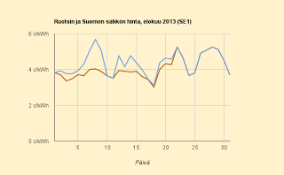 Ero Pohjois-Ruotsiin: 0,94 c/kWh
