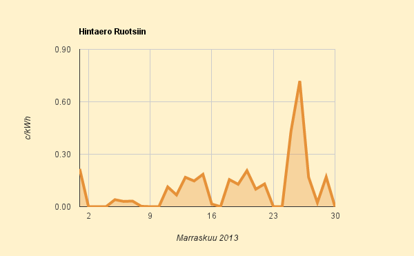 Kuukauden kallein hinta: 4,7 c/kWh (7.11.2014)