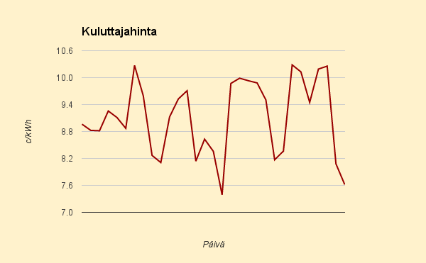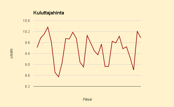 (Kuluttajahintana 10,4 c/kWh – 10,5 c/kWh)