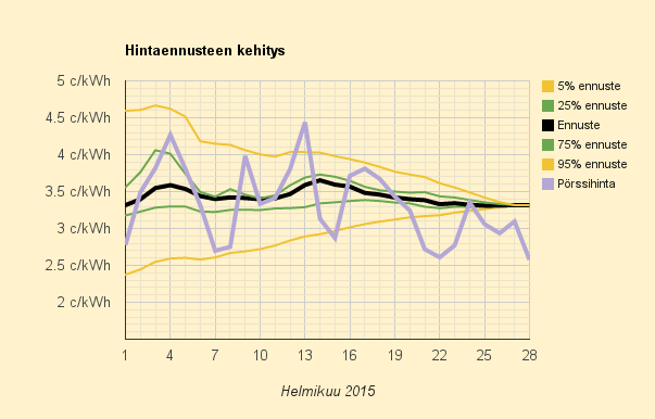 Kuukauden maksimihinta 3,6 c/kWh (5.3.2015) (kuluttajahinta 10,4 c/kWh)