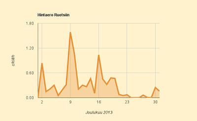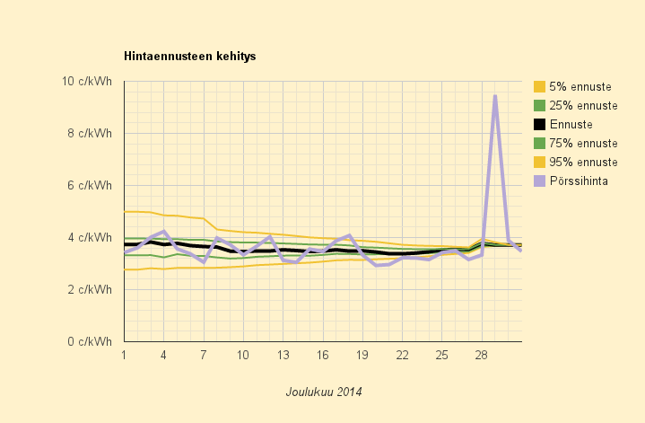 Kuukauden kallein hinta: 9,5 c/kWh (29.12.2014)