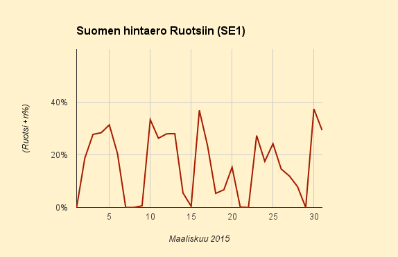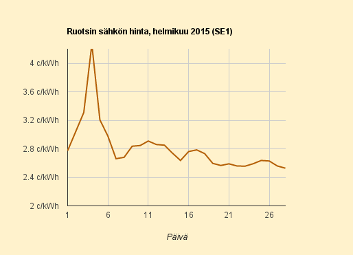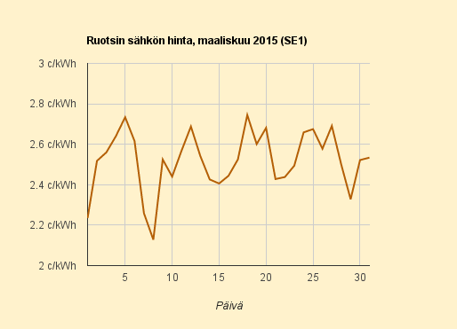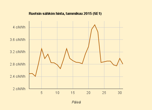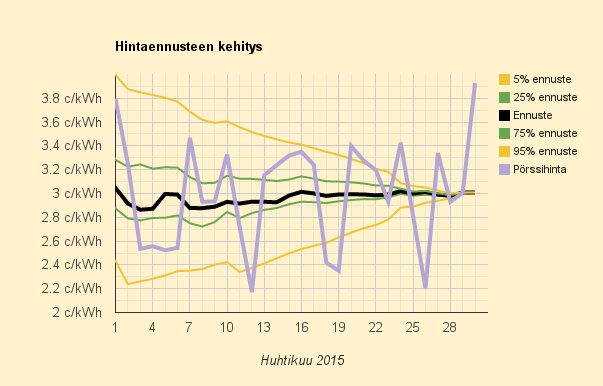 Huhtikuun 2015 hinta 3,009 c/kWh(tyypillinen kuluttajahinta 9,6 c/kWh)