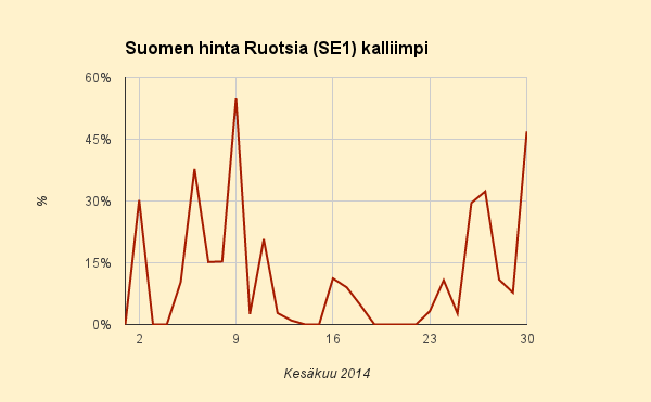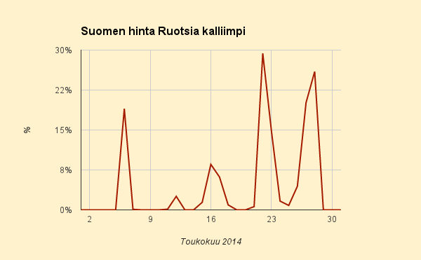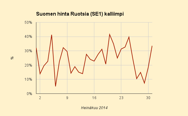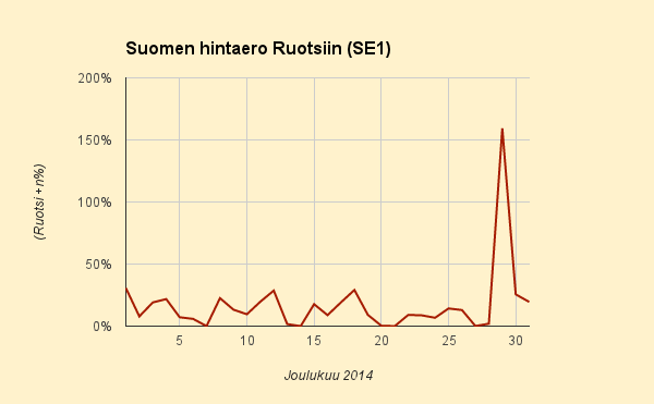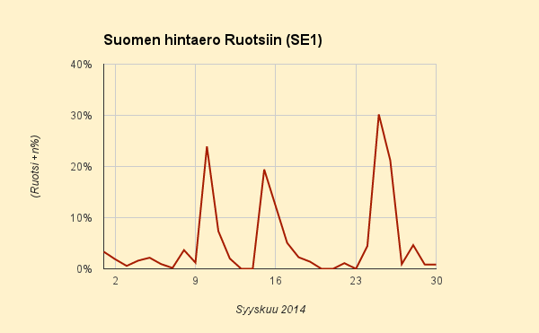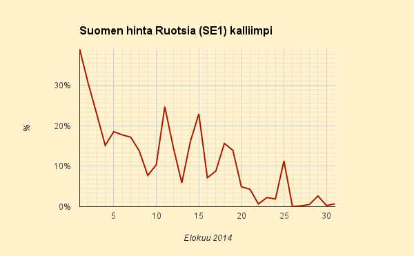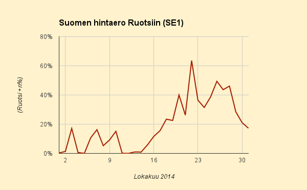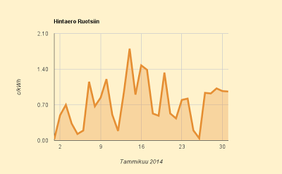 Suurin ero Ruotsiin 0,92 c/kWh (22.5.2014), 29%