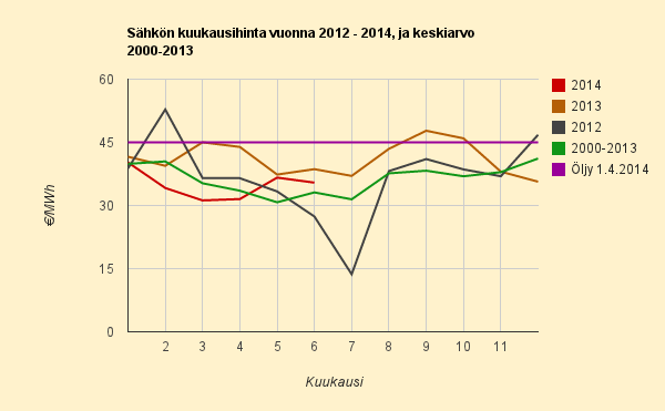 Toiseksi korkein 4,51 c/kWh (12.5.2014)
