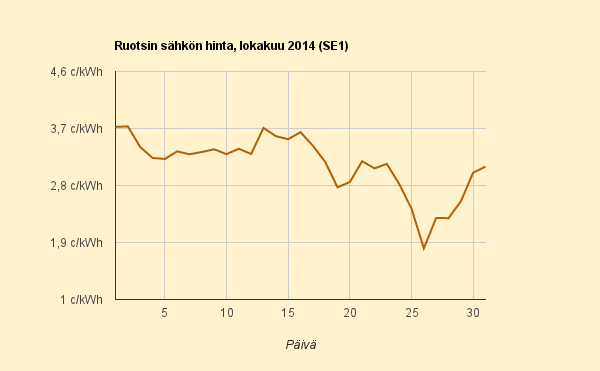 Kuukauden halvin hinta: 3,2 c/kWh (27.9.2014)
