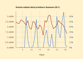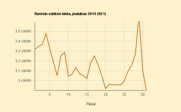 Ruotsin hinta (SE1): 3,1 c/kWh