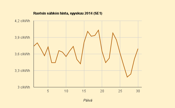 Ruotsin hinta (SE1): 3,6 c/kWh