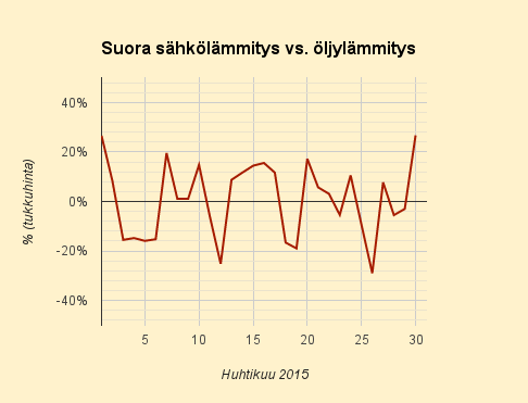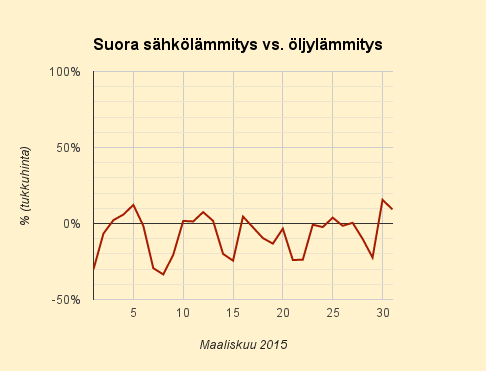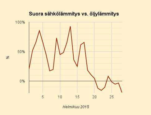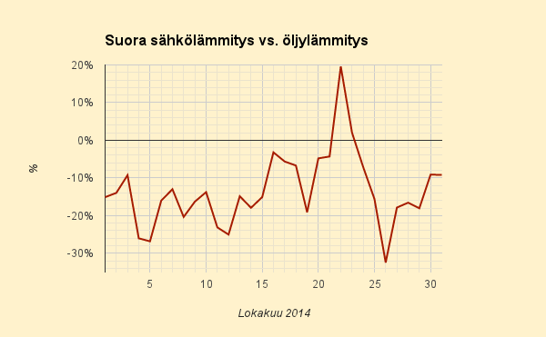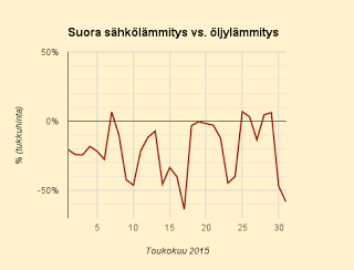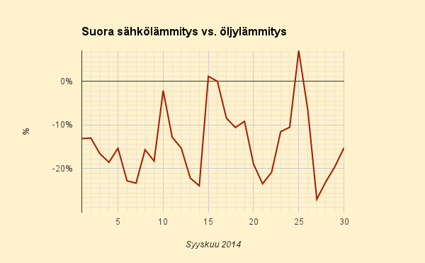 Ero öljylämmitykseen vaihteli välillä -24% – +7%, keskimäärin -14%