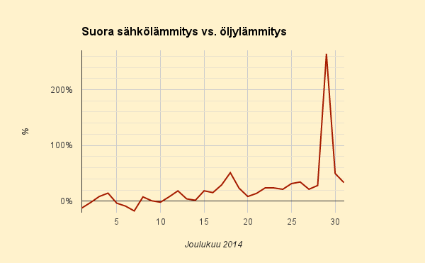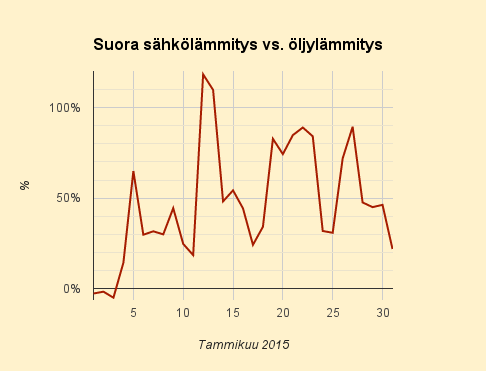 Ero öljylämmitykseen vaihteli välillä -12% – +265%, keskimäärin +23%