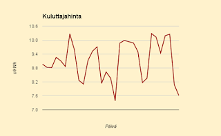 (Kuluttajahintana 10,4 c/kWh – 9,1 c/kWh)